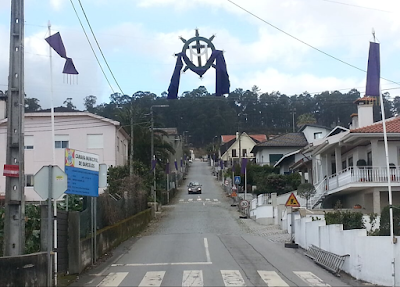 Este ano as tradicionais bandeirinhas roxas que decoram as ruas de Cambeses foram colocadas duas semanas antes dos Passos, ao contrário do que aconteceu sempre que era uma semana, ou menos.