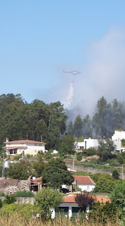 Um helicóptero e quatro carros dos bombeiros combateram um incêndio que deflagrou num pinhal em Cambeses, ao início da tarde de sexta-feira, dia 28.